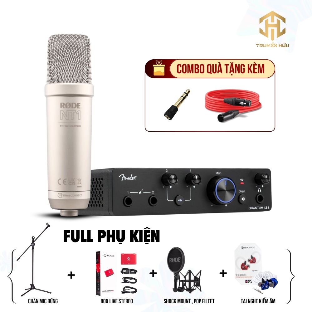 Combo Thu Âm Rode NT1 5th + Fender Quantum LT4 là bộ thiết bị thu âm mạnh mẽ dành cho vocal, podcast, livestream và sản xuất nội dung chuyên nghiệp, kết hợp giữa micro condenser cao cấp của Rode và audio interface đa kênh chuẩn phòng thu của Fender.