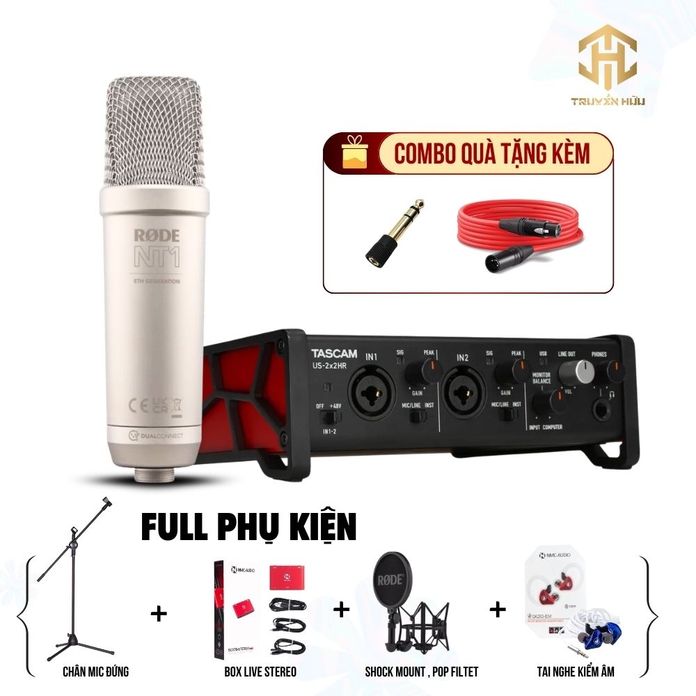 Combo Thu Âm Rode NT1 5th + Tascam US-2x2HR là bộ thiết bị thu âm chất lượng cao dành cho vocal, podcast, livestream và sản xuất nội dung tại home studio, kết hợp giữa micro condenser cao cấp của Rode và audio interface chuẩn phòng thu của Tascam.