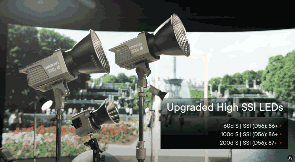 Một trong những cải tiến đáng kể của Amaran 200d S là công nghệ LED hiện đại. Đèn được trang bị Chipset LED kép xanh dương mới, giúp tái tạo quang phổ ánh sáng tốt hơn nhiều so với phiên bản trước. Chỉ số SSI của đèn đạt 87 trong ánh sáng ban ngày, tăng 13 điểm so với phiên bản cũ. Ngoài ra, các chỉ số màu CRI [96], TLCI [99], TM-30 RF [95] và TM-30 RG [103] cao, mang lại màu sắc chính xác và chất lượng tốt nhất trong phân khúc.