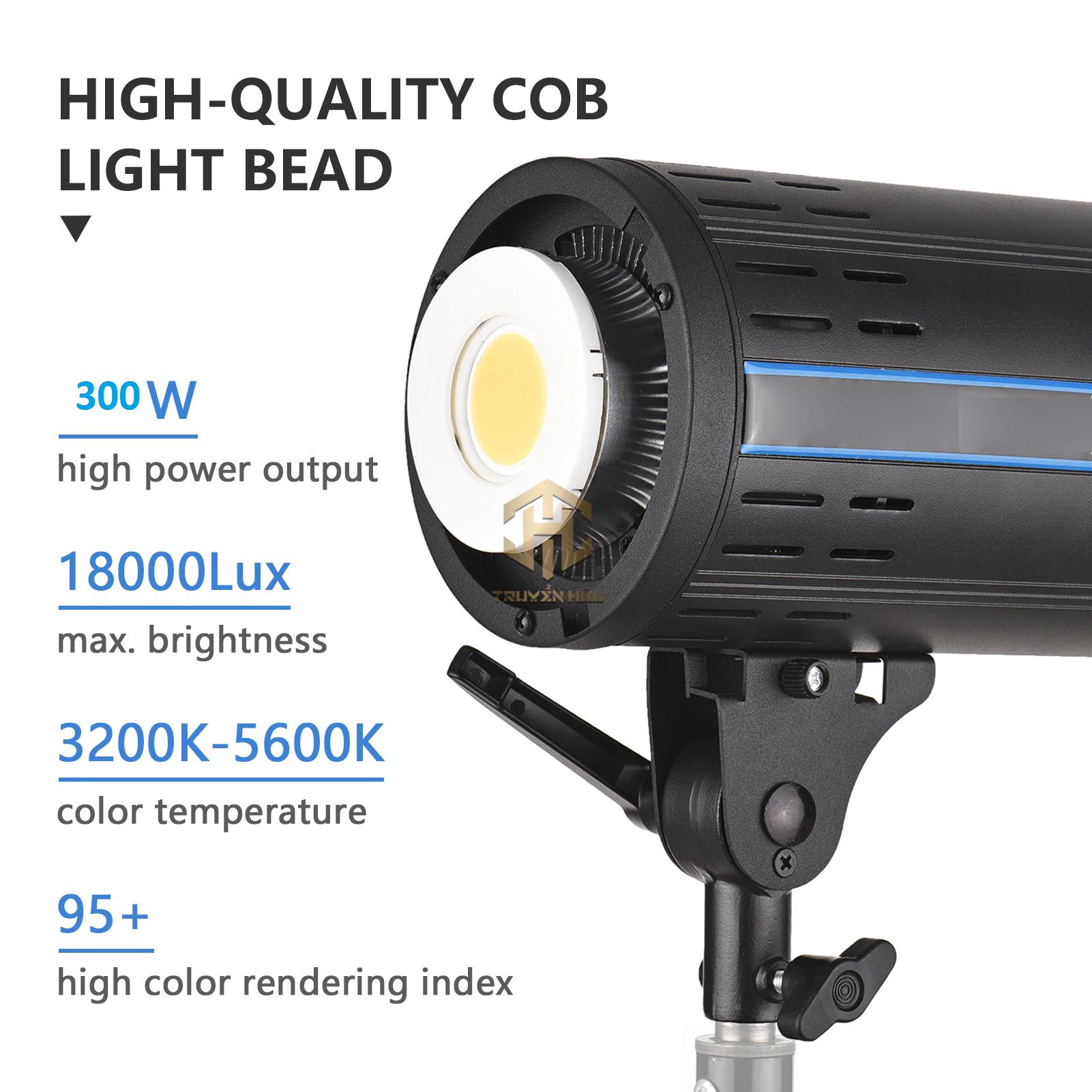 Thông qua một trong những cao-chất lượng ánh sáng COB đính hạt, 300W công suất cao và tối đa. Độ sáng lên đến 18000Lux; 95 + Chỉ số hoàn màu cao, giúp bạn để lấy thêm Vivid hình ảnh và ghi âm tuyệt vời hơn video.