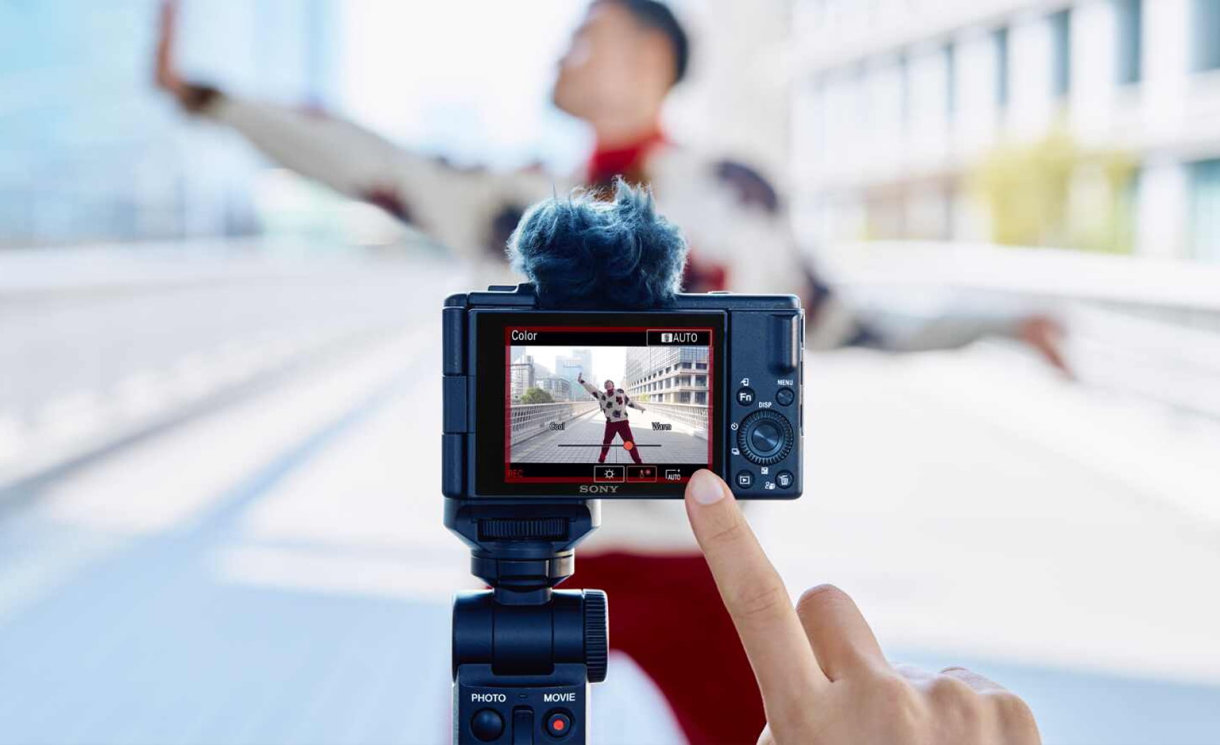 Sony ZV-1 II được thiết kế với cơ chế hoạt động đơn giản, dễ sử dụng ngay cả đối với những người lần đầu tiếp cận với máy ảnh vlog. Các biểu tượng chức năng như quay phim và hẹn giờ chụp được hiển thị trực quan trên màn hình, giúp người dùng dễ dàng thao tác khi chụp selfie hoặc trong những tình huống khó bấm nút vật lý trên máy.