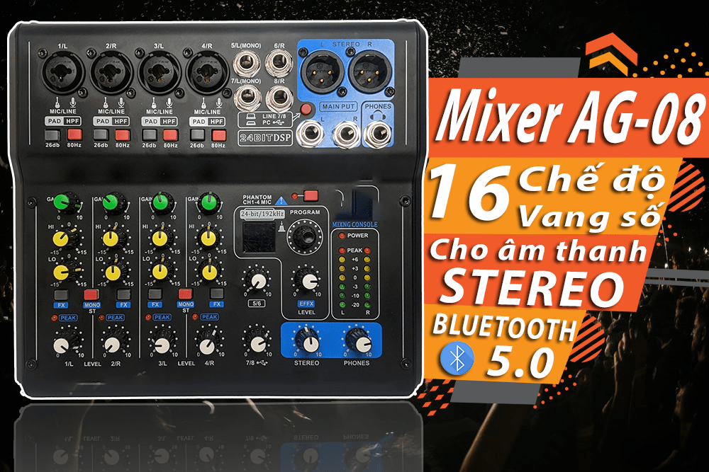 – Âm thanh vào: cổng 6ly, usb, bluetooth