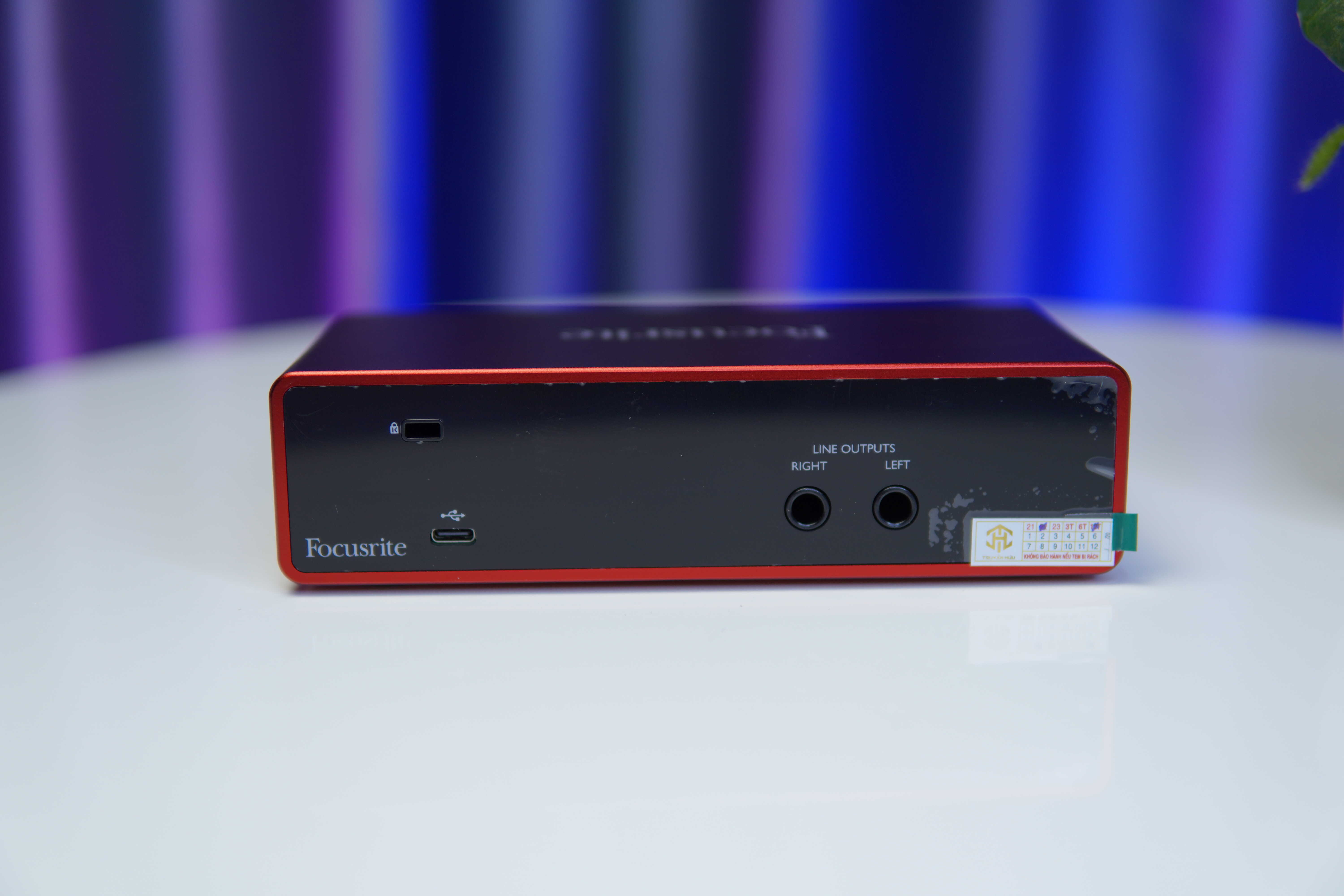 2i2 không có bất kỳ đầu vào/đầu ra MIDI hoặc SPDIF nào; nó là một soundcard cơ bản với 2 đầu ra cân bằng để kết nối cáp TRS ¼” với loa. 2i2 cũng có một giắc cắm tai nghe ¼” ở mặt trước với nút chỉnh âm lượng riêng.