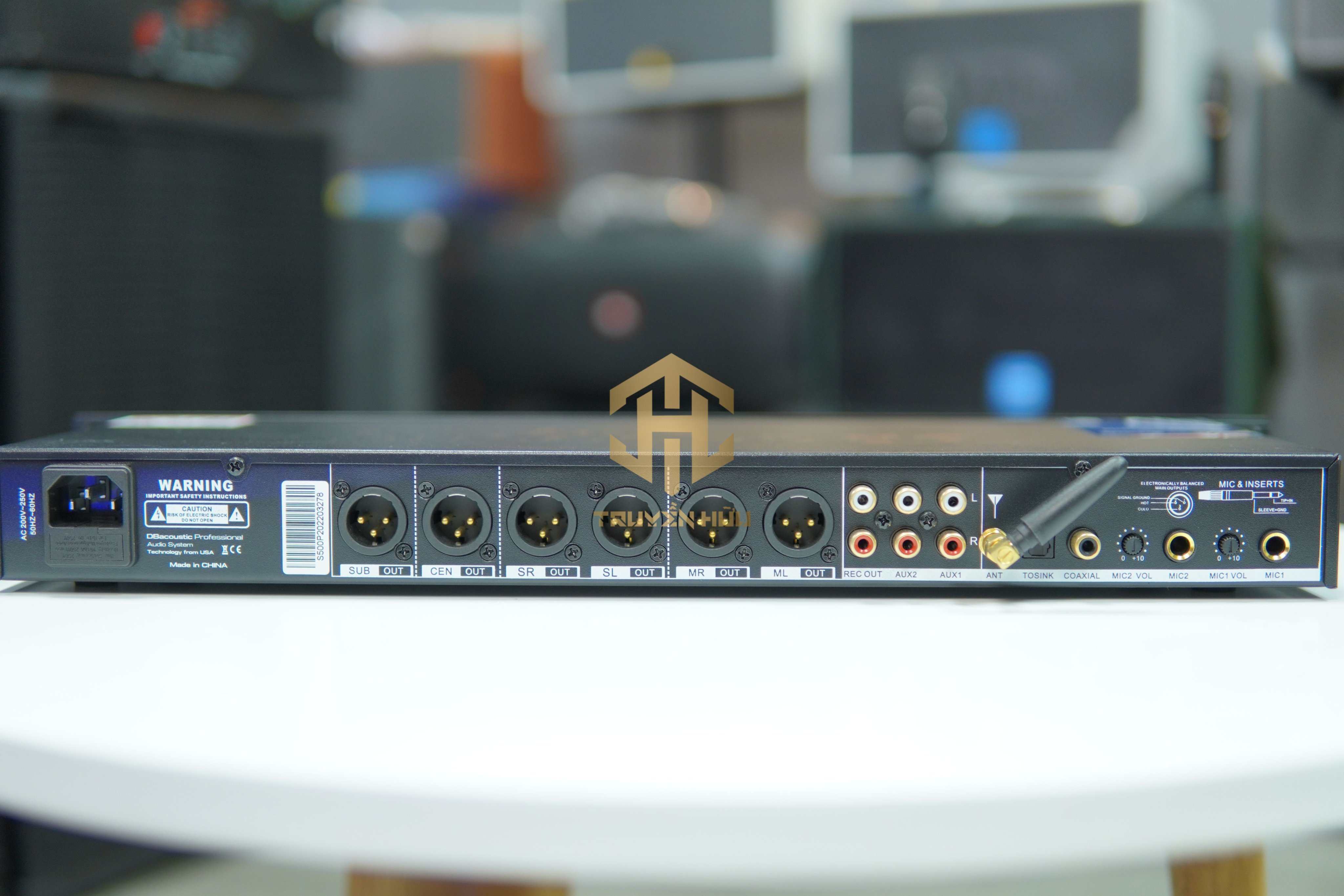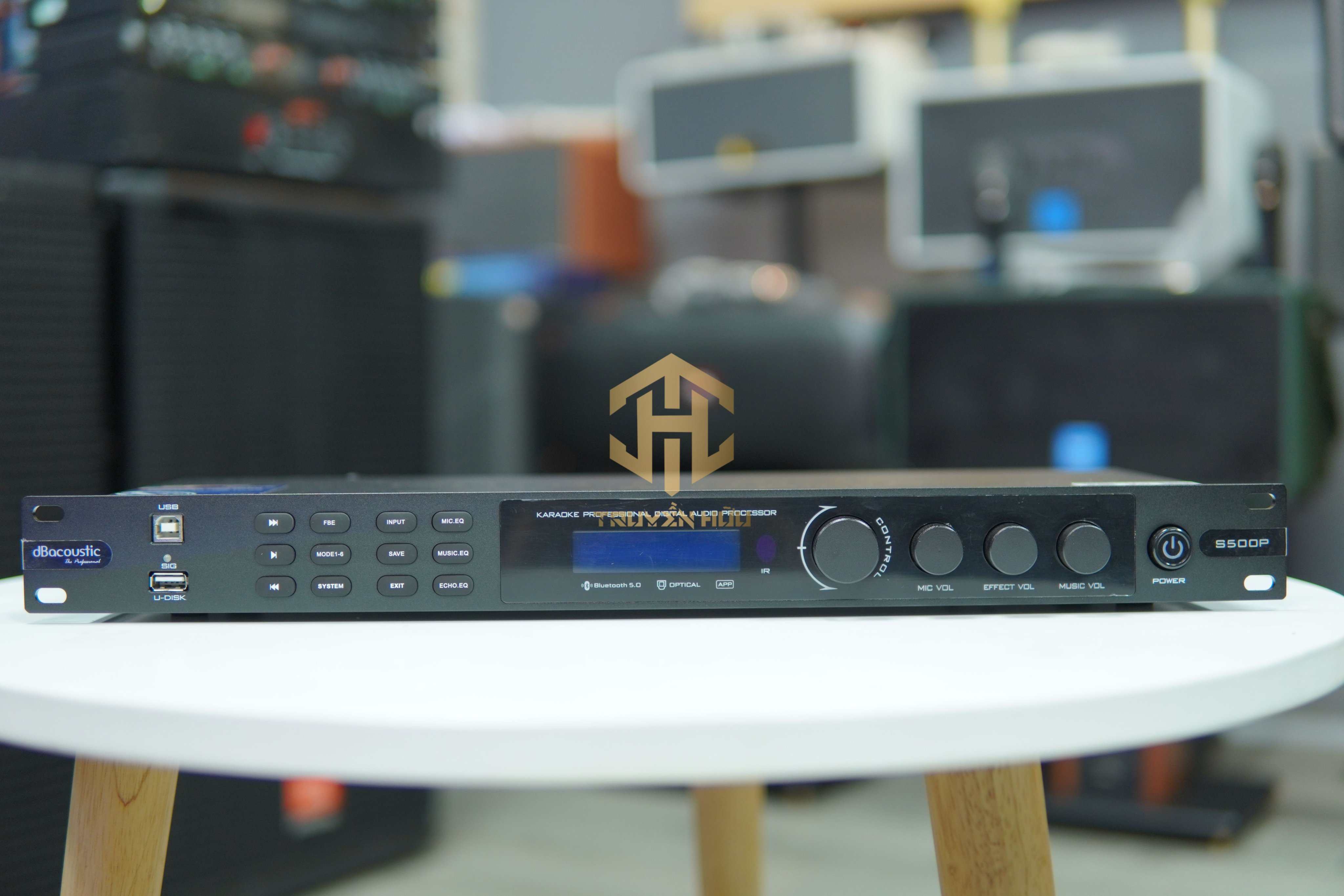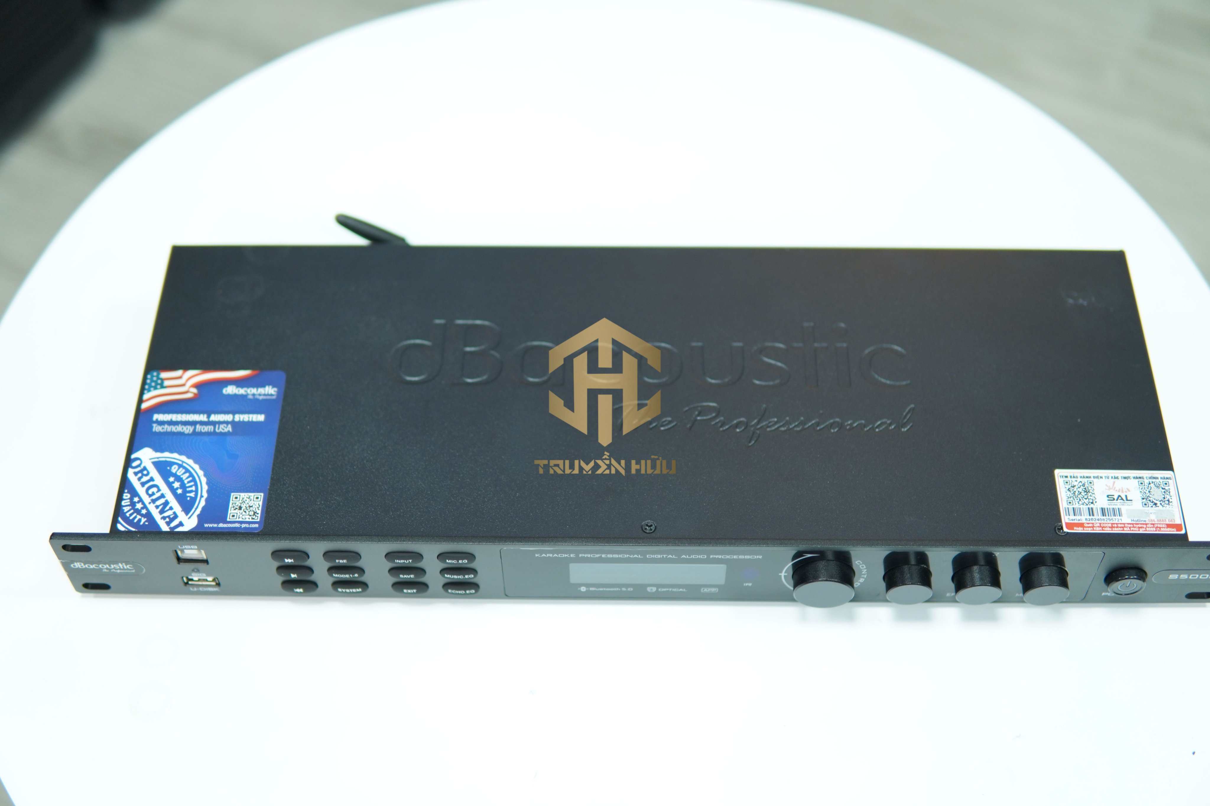 – Mặt trước thiết bị là màn hình LED, hệ thống núm vặn, nút điều chỉnh với nhiều chú thích rõ ràng và chi tiết thích hợp cho người dùng. Logo DBacoustic và tên sản phẩm được thiết kế nổi bật đối xứng tăng độ nhận diện cho thương hiệu.